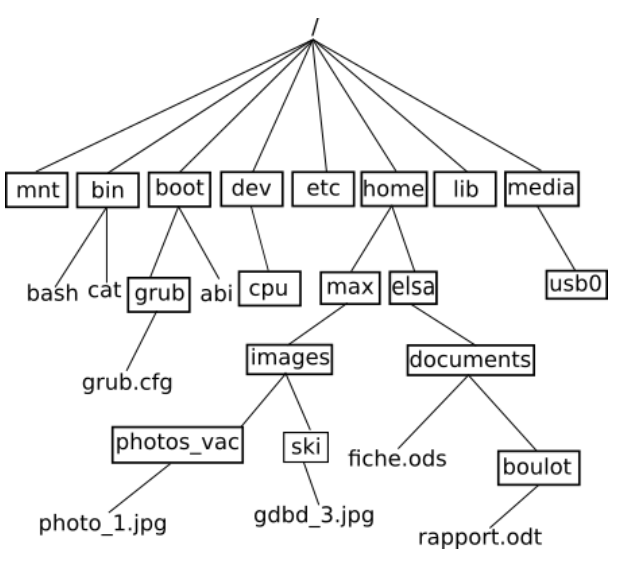 Pour permettre à l'utilisateur d'accéder aux données stockées sur le disque dur, les systèmes d'exploitation utilisent une représentation sous forme d'arbre (physiquement, les données ne sont pas organisées ainsi dans le disque dur).